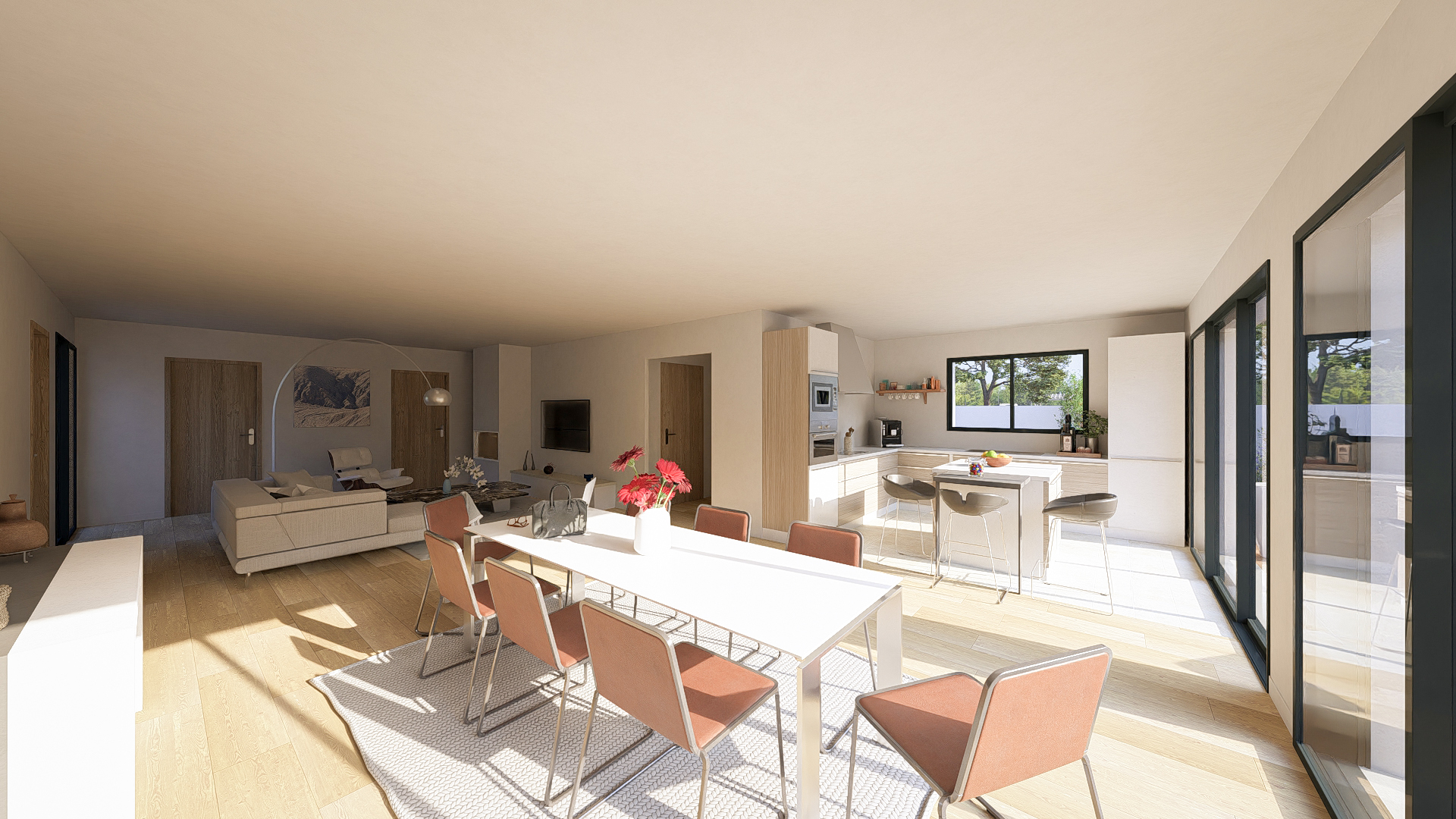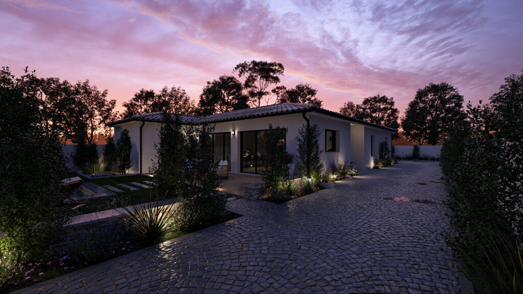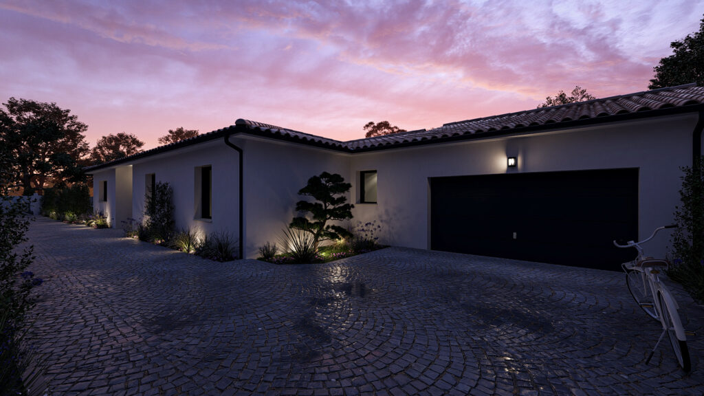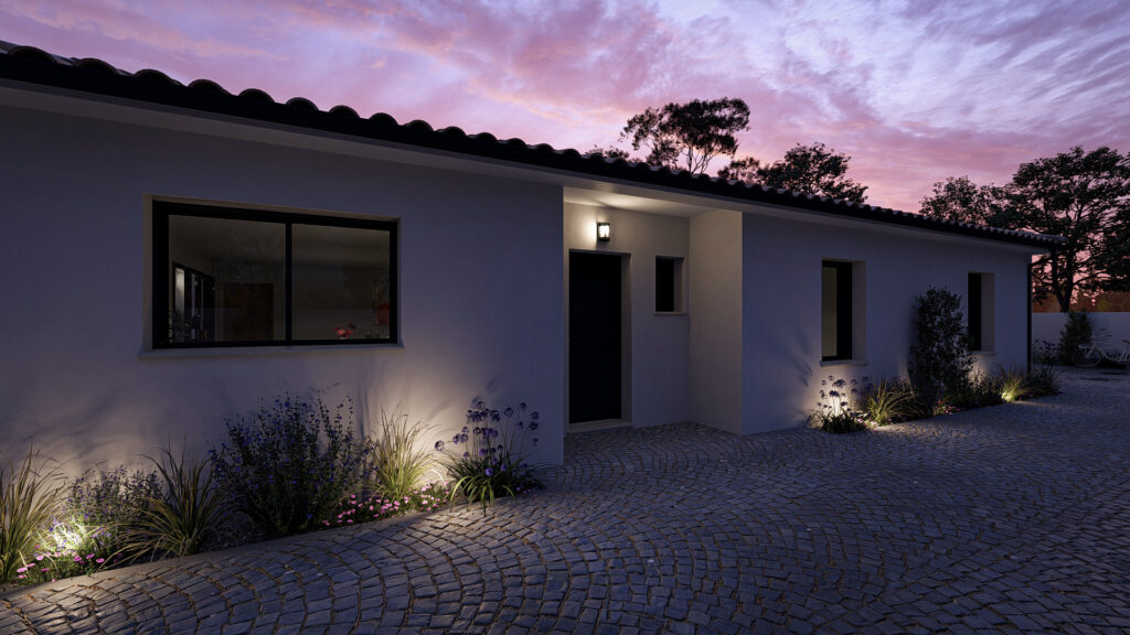 Cette maison de plain-pied offre une organisation spacieuse et bien pensée, idéale pour une vie de famille. Elle s’articule autour d’une grande pièce de vie lumineuse réunissant salon et salle à manger, avec une cuisine attenante et un cellier. L’espace nuit se compose de trois chambres et d’un bureau, ainsi que de deux salles d’eau et de WC indépendants. Un vaste garage attenant et un porche d’entrée complètent cet ensemble confortable et fonctionnelle.